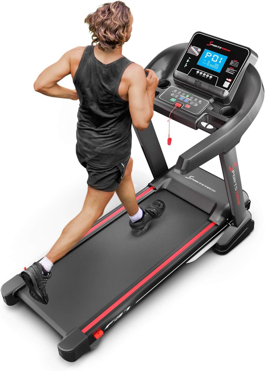 Vos données de fréquence cardiaque sont fournies par les moniteurs de fréquence cardiaque EKG intégrés au guidon du tapis de course. Un récepteur d’impulsions sans fil est également standard, avec une attache de sécurité ennuyeuse mais essentielle.