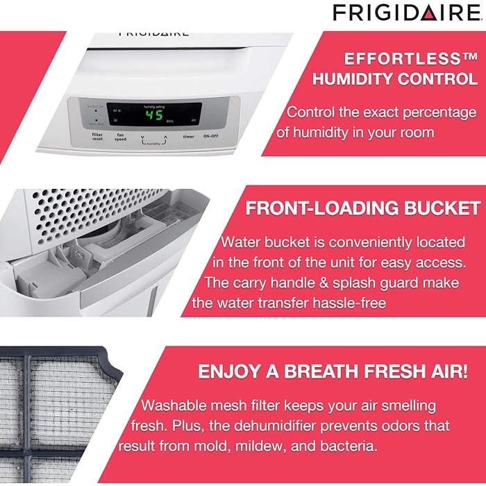 Le Frigidaire FAD704DWD a une incroyable capacité de purification de l'air. Il élimine tout l'excès d'humidité de l'air, ce qui aide à limiter la croissance de la moisissure fongique ou des moisissures.