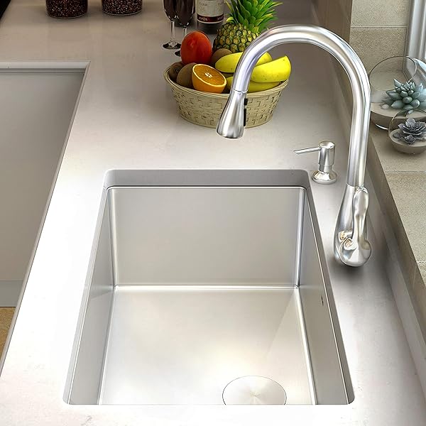 La finition polie de l'évier le long des coins arrondis contribue à la belle apparence avec un nettoyage facile. Cet évier de petite taille avec une grande profondeur fonctionne assez bien tout seul. Ou vous pouvez l'utiliser avec un autre, de grande taille.